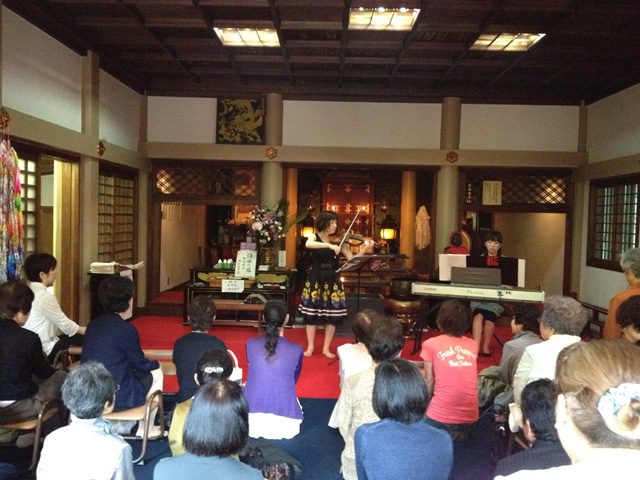 本堂で聞くバイオリンとピアノもいいものです。