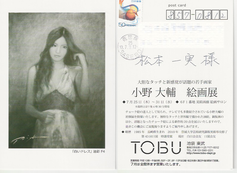 池袋東武での絵画展の案内状をいただいた